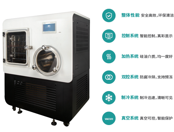 | ? 進(jìn)口真空泵 | ? 自動充氮接口 | ? T型掛瓶架 | ? 共晶點測試 | ? 手機(jī)APP遠(yuǎn)程控制 |