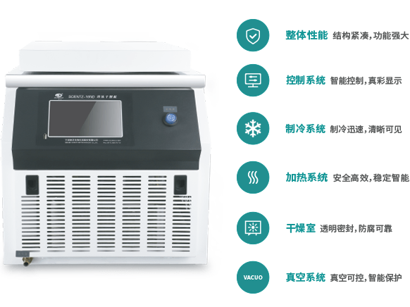 SCIENTZ-10ND系列加熱式鐘罩冷凍干燥機(jī)?利用公司獨(dú)特的點(diǎn)狀加熱升溫曲線計(jì)算方式,在實(shí)驗(yàn)型冷凍干燥機(jī)上實(shí)現(xiàn)加熱功能,升溫更穩(wěn)定,無過沖,控溫更精準(zhǔn)。緊湊的儀器結(jié)構(gòu)設(shè)計(jì),可有效節(jié)省寶貴的實(shí)驗(yàn)室空間。采用先進(jìn)的進(jìn)口壓縮機(jī),功能強(qiáng)大,可提供高度自動化的高品質(zhì)冷凍干燥環(huán)境(常規(guī)空載-56℃,可選配-80℃壓縮機(jī)),特別適合于中小型實(shí)驗(yàn)室在試驗(yàn)階段摸索凍干工藝。